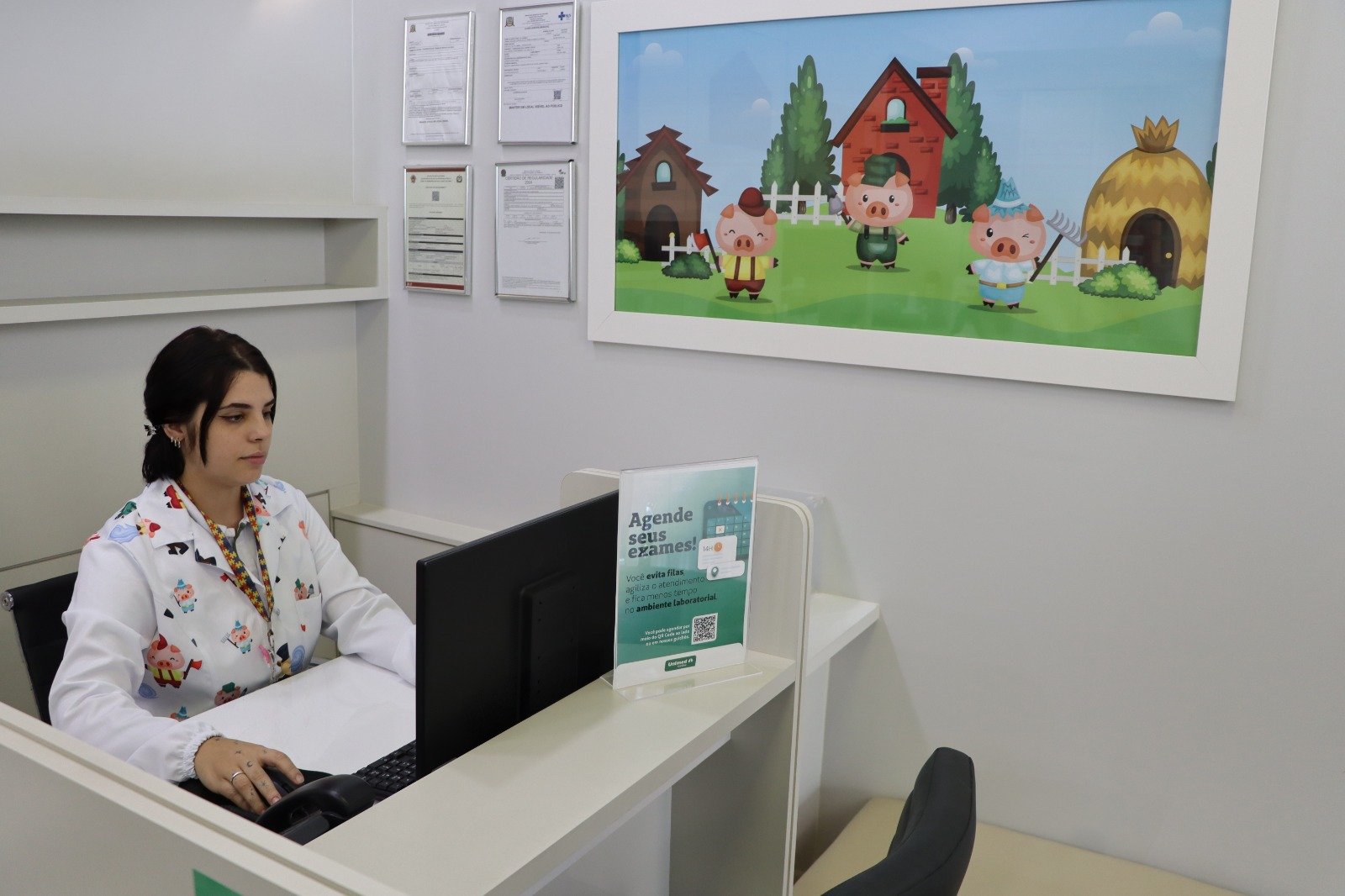 O Posto de Coleta Metropolitan oferece serviços de coleta de materiais biológicos para análises clínicas laboratoriais. Embora o local seja especialmente voltado para o atendimento infantil, ele também atende adultos, permitindo que pais e filhos realizem seus exames no mesmo local, com segurança e conforto. O posto de coleta conta com um ambiente acolhedor com temática dos três porquinhos, sala de brinquedos, certificado de coragem e brindes como reconhecimento da coragem das crianças. O local também oferece diferenciais exclusivos, como óculos de realidade virtual e visualizador de veias, que tornam a experiência ainda mais leve e interativa.